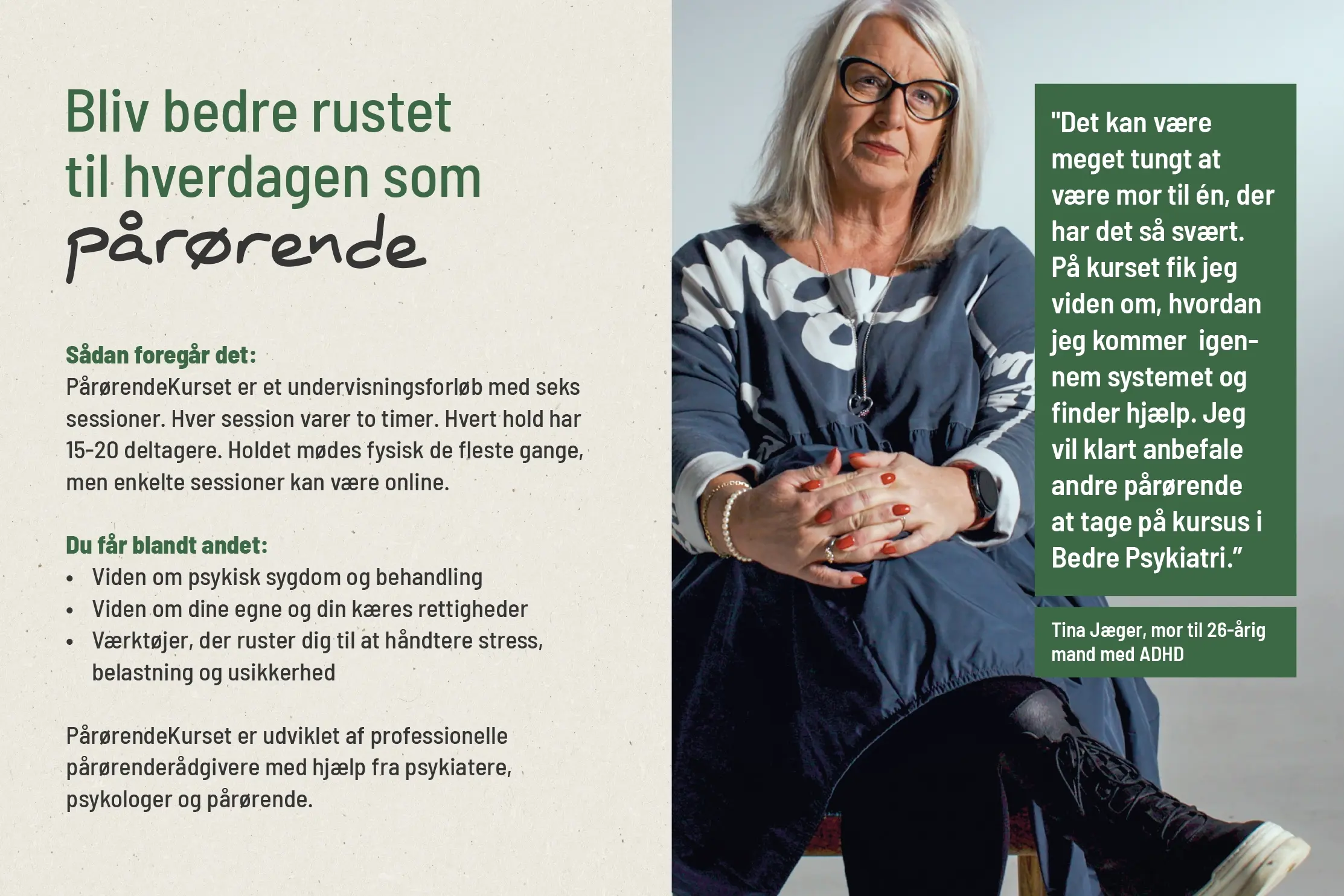 Vi har hjulpet med at udvikle informations- og kursusmaterialer til Bedre Psykiatri, som er en af landets største medlemsforeninger inden for psykiatrien. Bedre Psykiatri er en ny kunde, og vi glæder os til at være med til at formidle foreningens meget vigtige arbejde, aktiviteter og tilbud til pårørende til en med psykisk sygdom eller udviklingsforstyrrelse.